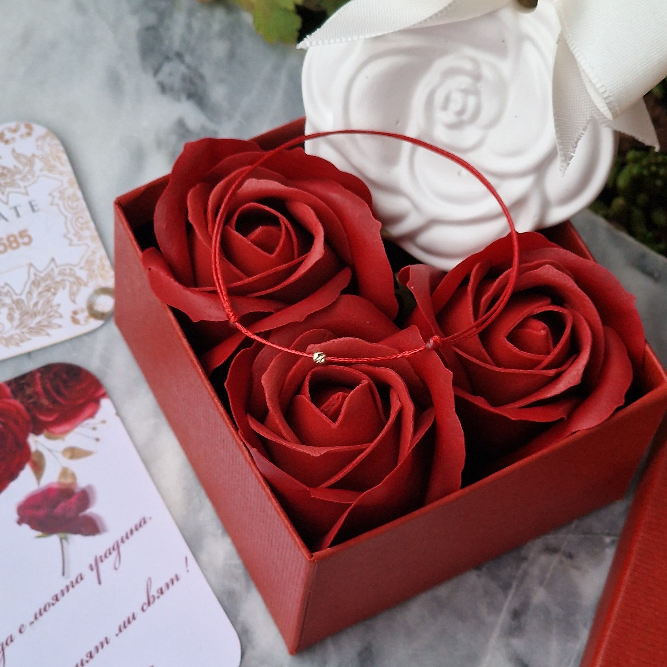 Луксозен Подарък за Момиче или Жена Кутия с Бели Рози и Гривна със Злато 14К